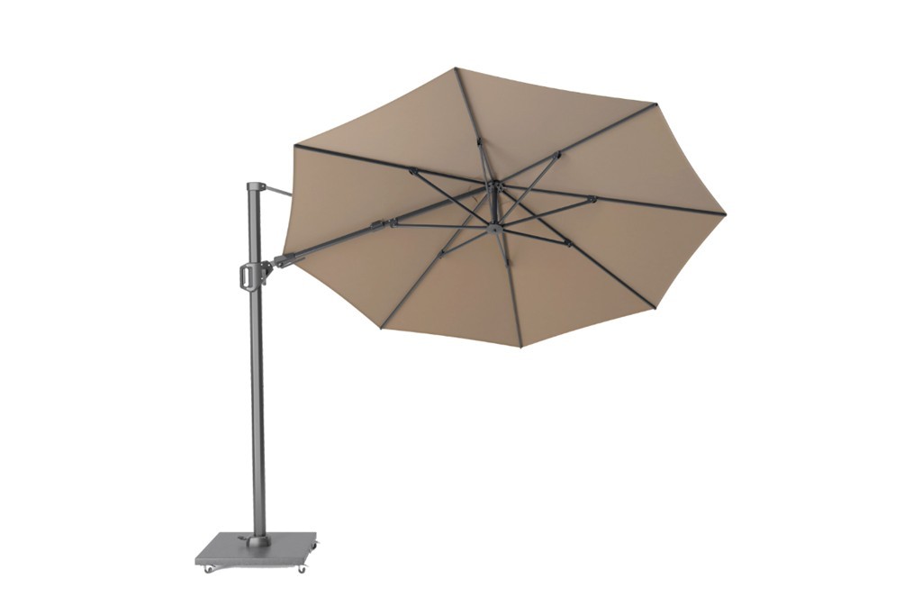 De Challenger parasol is een luxe zweefparasol. De T2 functie staat voor het dubbele kantelsysteem met een RVS binnenwerk. Hierdoor is de parasol traploos diagonaal en naar achteren te verstellen. En daarbij kan de parasol 360 graden gedraaid worden over zijn eigen as. Hierdoor kunt u heel eenvoudig een schaduwplek creeeren. Kwalitatief is deze parasol ook echt een topstuk. Zo beschikt hij over een doek in stofklasse 3, dat staat voor 300 grams polyester doek en voorzien van een vocht en vuil afstotende coating en zorgt voor UV bescherming tot UPF35+. Verder zijn er doekspanners aangebracht waardoor het doek altijd strak blijft staan. Het doek heeft een goede kleurechtheid.