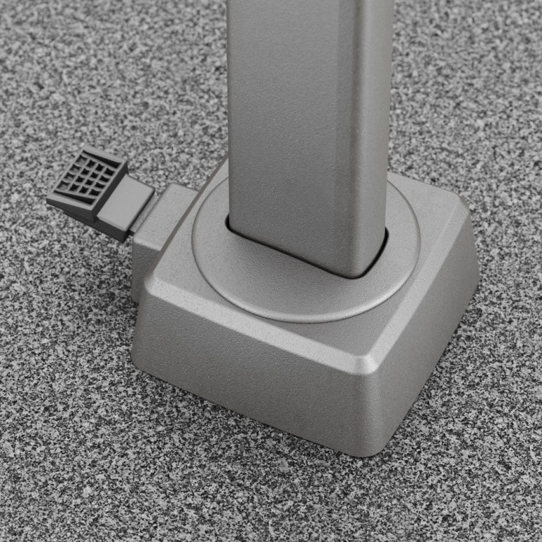 Bij deze parasol leveren we een 90kg parasolvoet en parasolhoes.