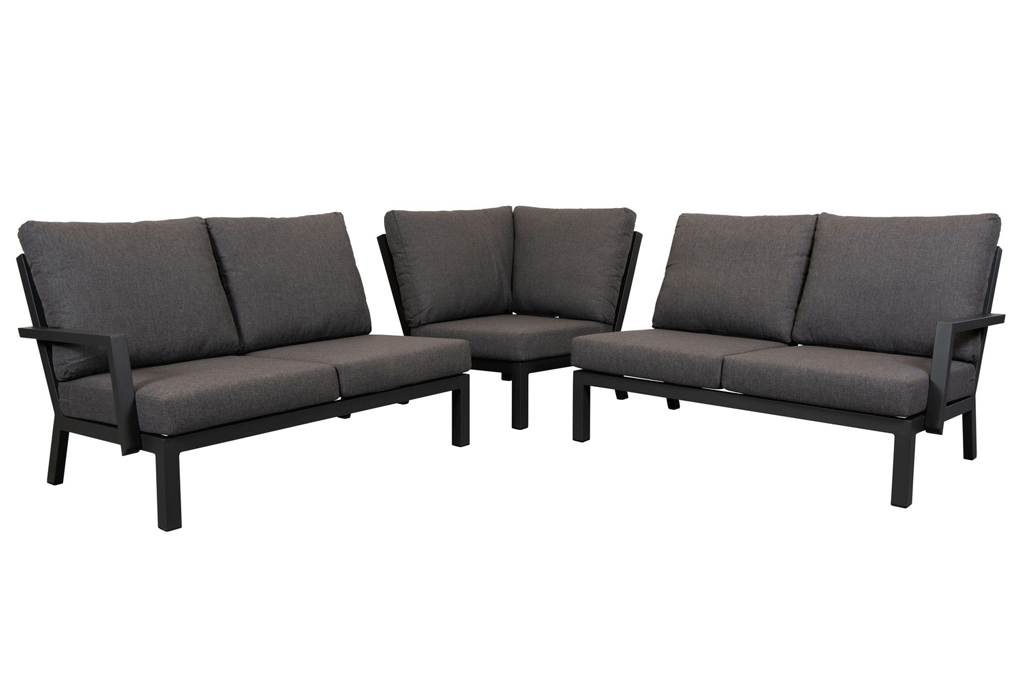 De Idoan hoekset heeft een frame wat is gemaakt van aluminium. Daardoor is de set onderhoudsvriendelijk en weersbestendig. De kussens zijn gemaakt van olefin stof. Deze stof is licht waterafstotend en kleurvast. Wel het advies om de kussens bij regen binnen te halen of te beschermen met een hoes speciaal voor deze set. De set bestaat uit een 2-zits arm links, hoek, 2-zits arm rechts en kussens.