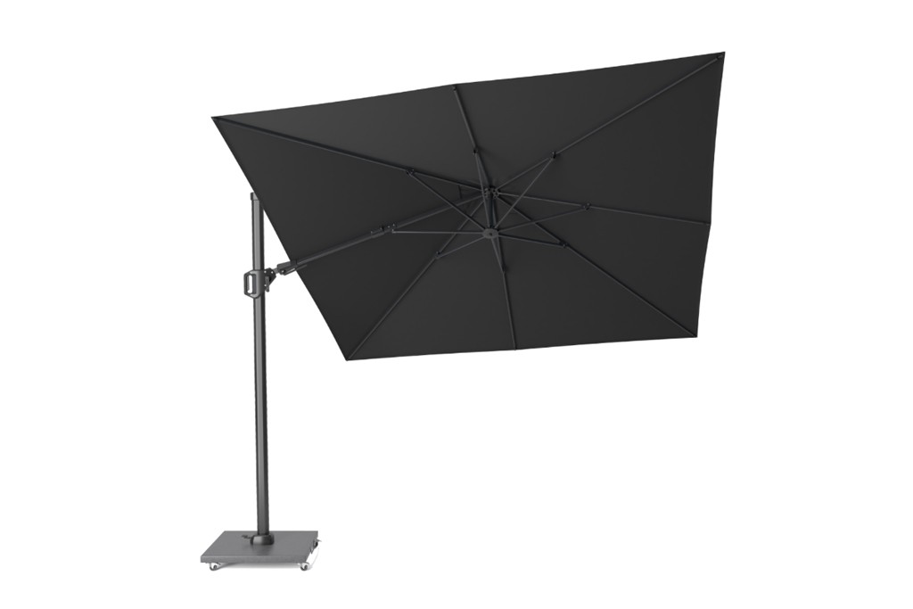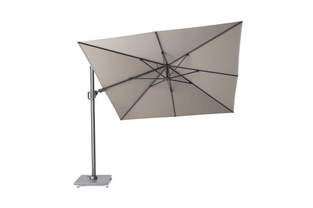 De Challenger premium parasol van Platinum in een luxe zweefparasol. De T2 functie staat voor het dubbele kantelsysteem met een RVS binnenwerk. Hierdoor is de parasol traploos diagonaal en naar achteren te verstellen. En daarbij kan de parasol 360 graden gedraaid worden over zijn eigen as. Hierdoor kunt u heel eenvoudig een schaduwplek creeeren. Kwalitatief is deze parasol ook echt een topstuk. Zo beschikt hij over een doek in stofklasse 4, dat staat voor 250 grams spuncrylic doek en voorzien van een vocht en vuil afstotende coating en zorgt voor optimale bescherming tegen UV stralen. Verder zijn er doekspanners aangebracht waardoor het doek altijd strak blijft staan. Het doek heeft een goede kleurechtheid. De parasol wordt zonder voet of hoes geleverd maar deze kunt u gemakkelijk bijbestellen.