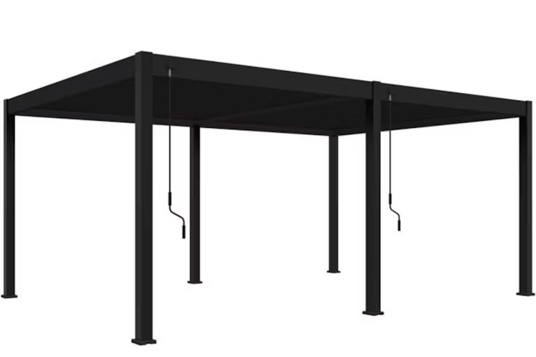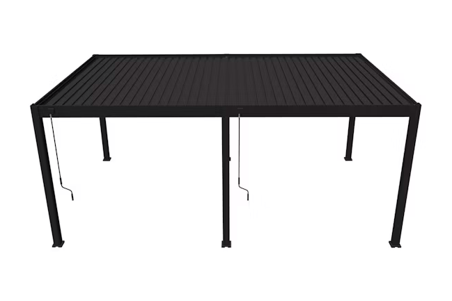 Via een zwengels die erbij zit, kunnen de lamellen open en dicht gedraaid worden. Dit tot 135 graden schuin of helemaal dicht. Zoals al verteld is het dak 100% waterdicht en zal het water via de zijkant doorgaan in het geintegreerd afwateringsysteem. Hierdoor kan de lamellen overkapping overal in jouw tuin staan en hoeft het niet bij een waterafvoer te staan.