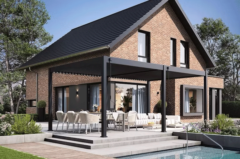 In de zonnen uren lekker in de schaduw liggen? Of in de avonduren onder de overkapping? De lamellen overkapping biedt hiervoor de mogelijkheid. Het heeft een kanteldak en hierdoor bepaal jij hoeveel zon er door de overkaping heen mag komen. In de avonduren kun je de lamellen dicht draaien en houdt het de warmte beter vast. Ook is de lamellen overkapping 100% waterdicht als de lamellen dicht zijn gedraaid. Het is dus praktisch maar ook zijn de looks va deze lammellen overkapping zeker een aanvulling op jouw tuin!