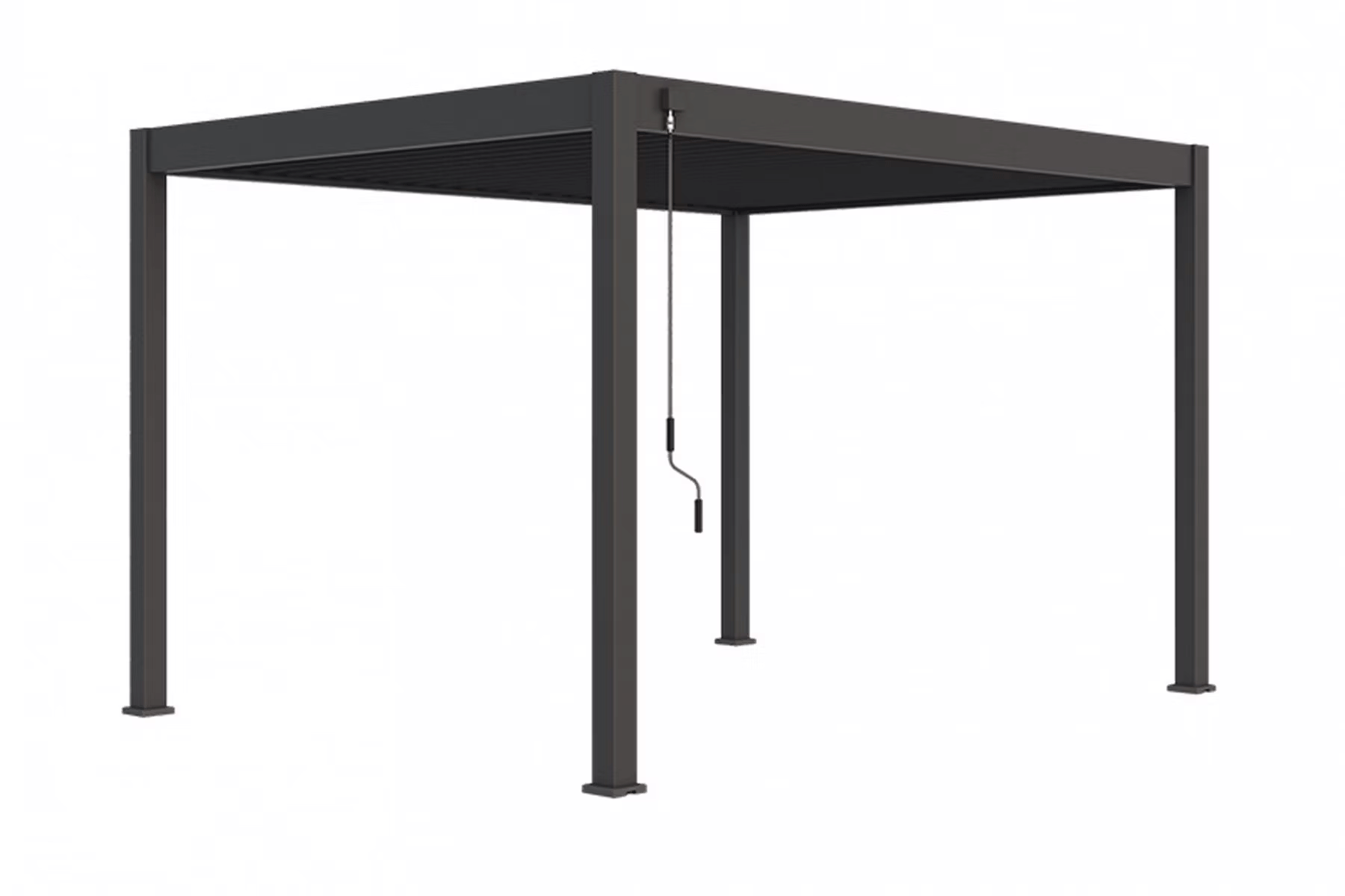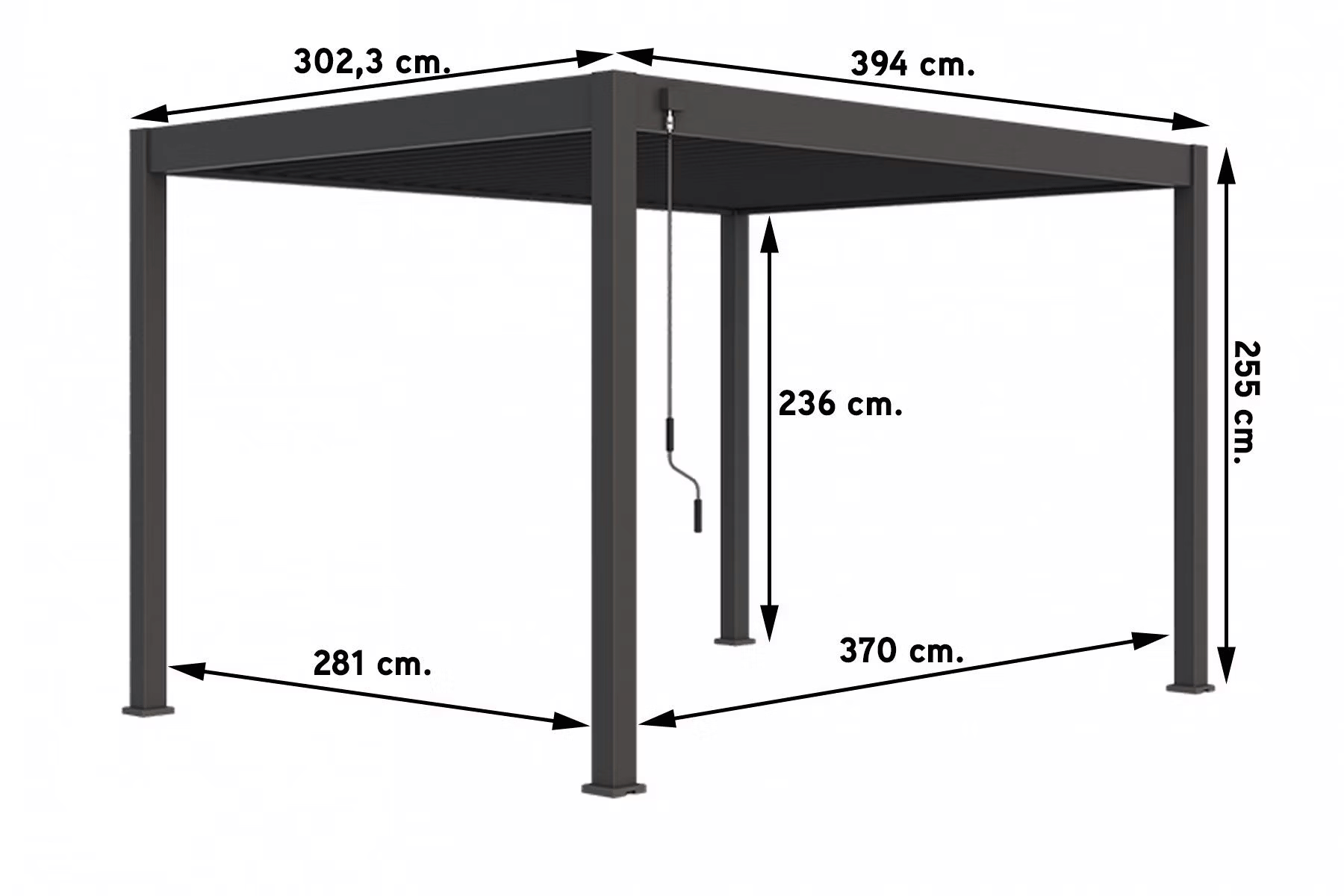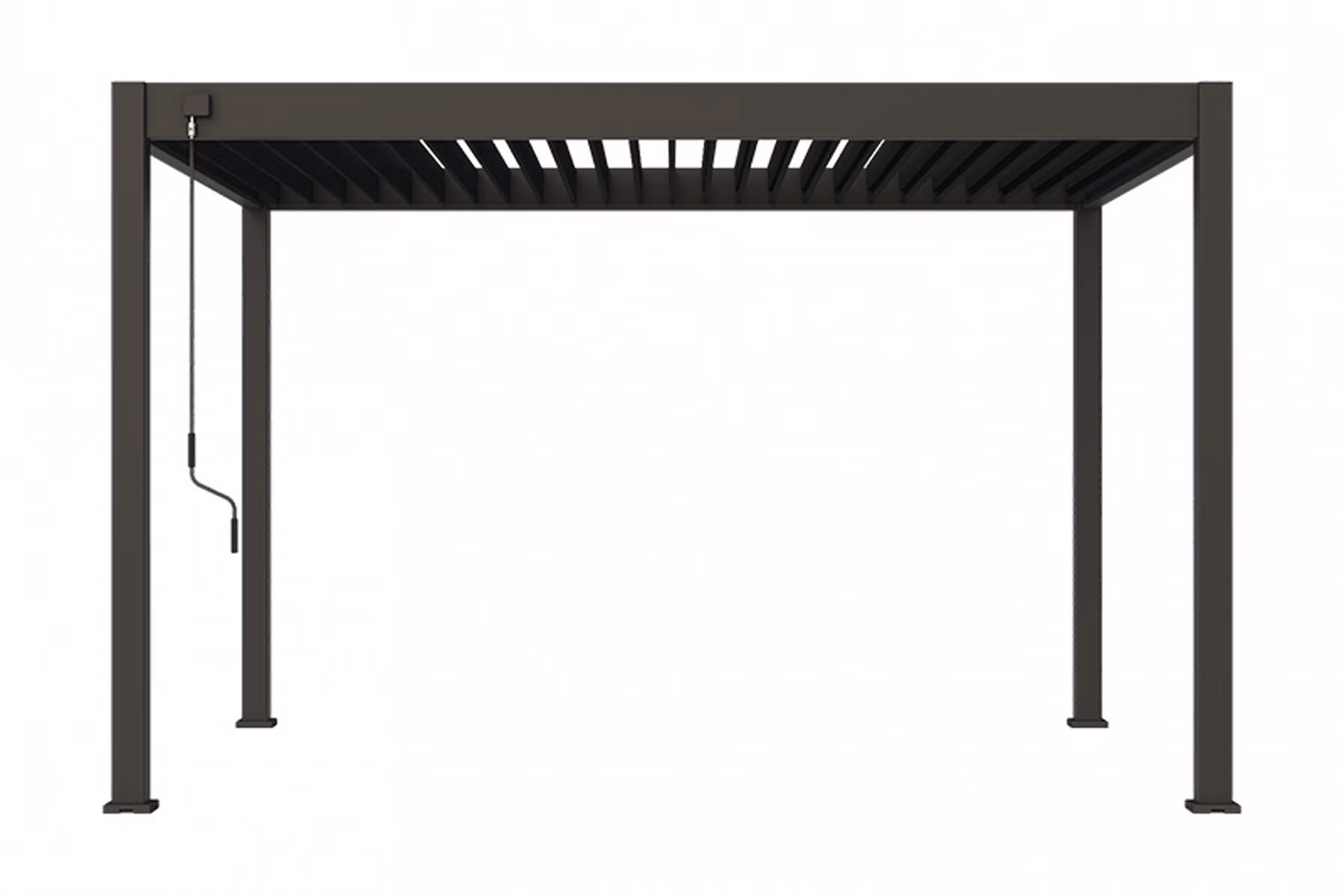 Via een zwengels die erbij zit, kunnen de lamellen open en dicht gedraaid worden. Dit tot 135 graden schuin of helemaal dicht. Zoals al verteld is het dak 100% waterdicht en zal het water via de zijkant doorgaan in het geintegreerd afwateringsysteem. Hierdoor kan de lamellen overkapping overal in jouw tuin staan en hoeft het niet bij een waterafvoer te staan.
