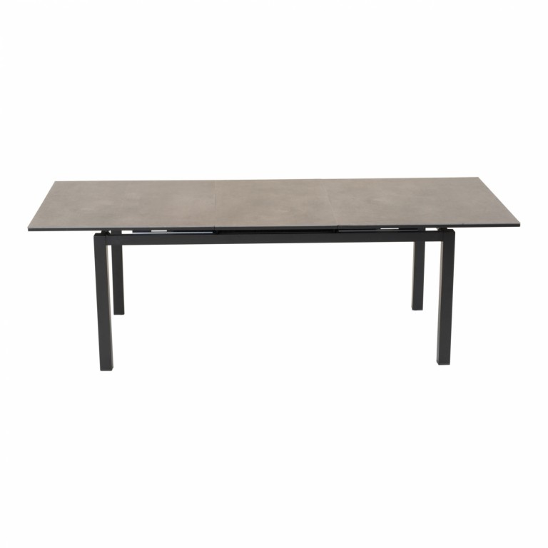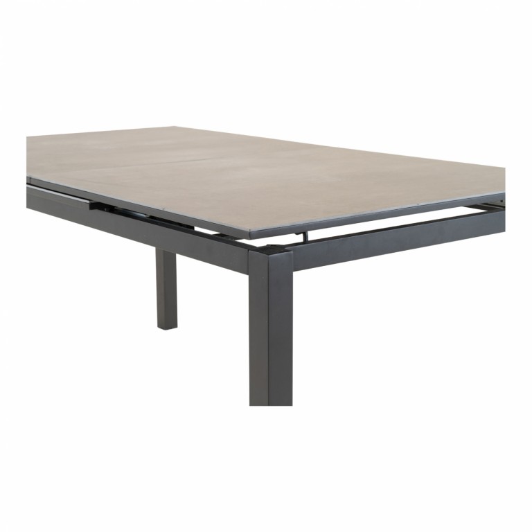 Deze dining tuintafel van Lesli living is uitgevoerd in hoogwaardig aluminium met antraciet HPL tafelblad en heeft een chique industriele uitstraling. De tafel is duurzaam en weersbestendig zodat hij het hele jaar buiten kan staan. Ideale tuintafel voor een zowel een klein als groot gezelschap.